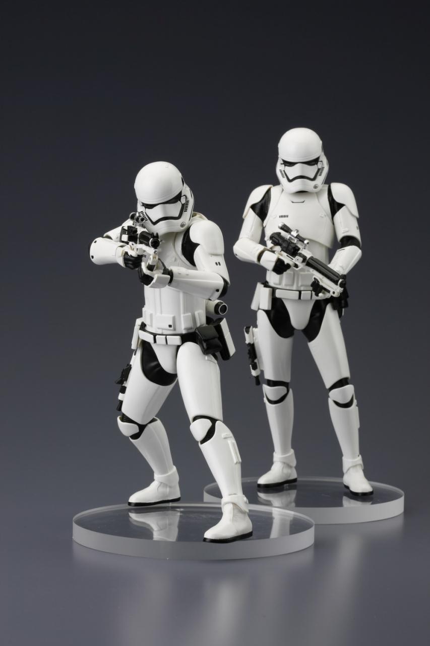 - The First Order Stormtrooper Two-Pack ARTFX+: Kotobukiya's lineup of army builder two packs continues with the STAR WARS First order Stormtrooper ARTFX+ 2 pack. Display the Stormtroopers in multiple different poses using the alternative arm, leg, and weapon parts. These 1:10 scale figures assemble easily and quickly with snap-fit assembly: no glue or painting required. Troopers feature magnets in their feet for added stability on the included bases. SRP $84.99 and available December 2015.