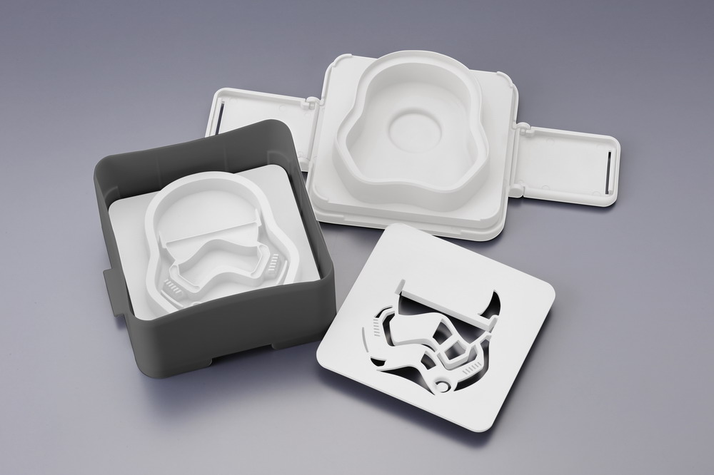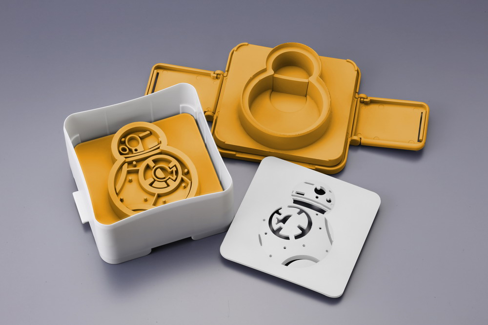 - Sandwich Pouch Shapers (3 Kinds): •Kotobukiya's line for kitchen goods based on STAR WARS characters expands! Create your own BB-8, First Order Stormtrooper or Millennium Falcon shaped pouch sandwich or stamp the Droid's image into a piece of bread. Use along with STAR WARS inspired lightsaber chopsticks and silicone ice trays for a full STAR WARS dining experience. Quick and easy to use- great for kids' lunches or party hors d'oeuvres. SRP $17.99 and available November 2015.