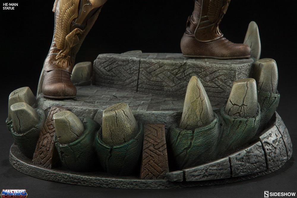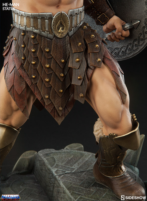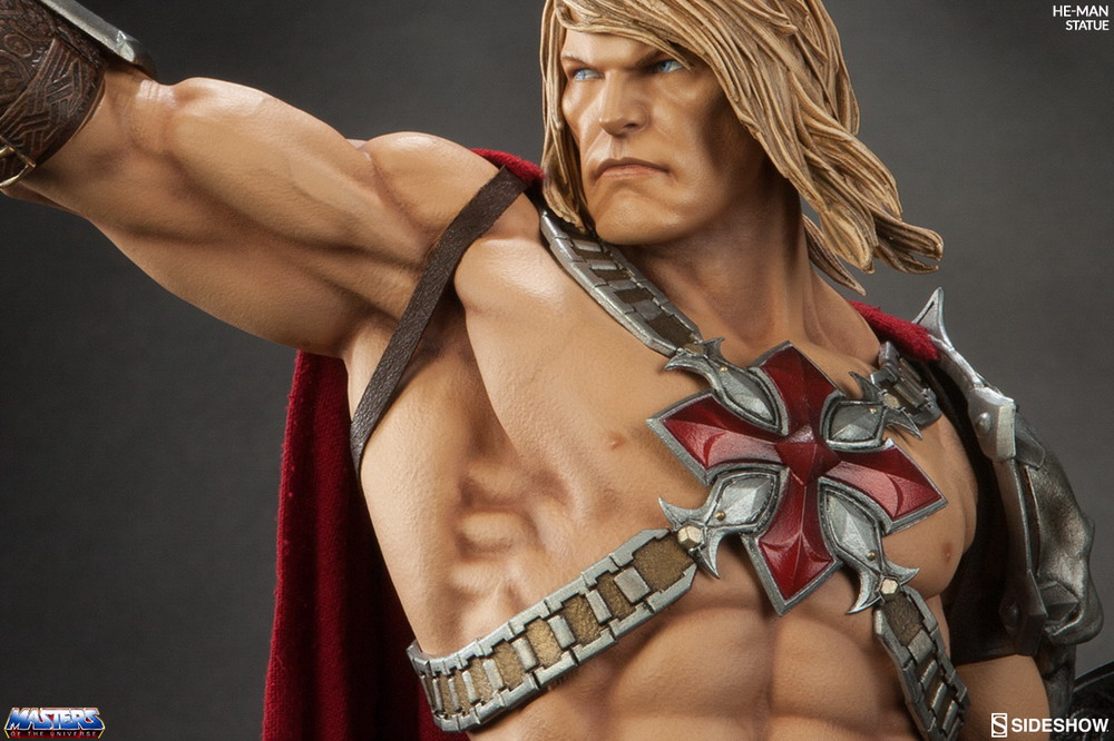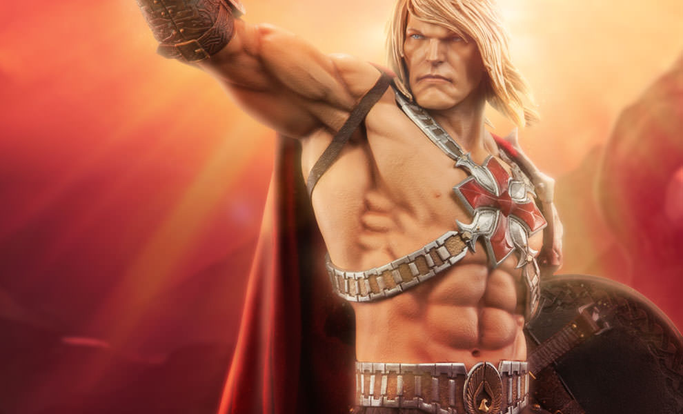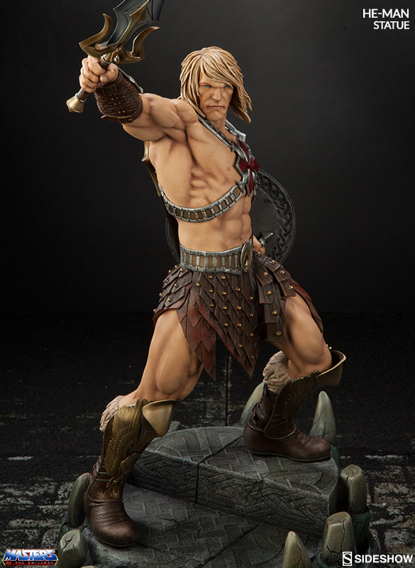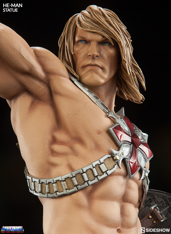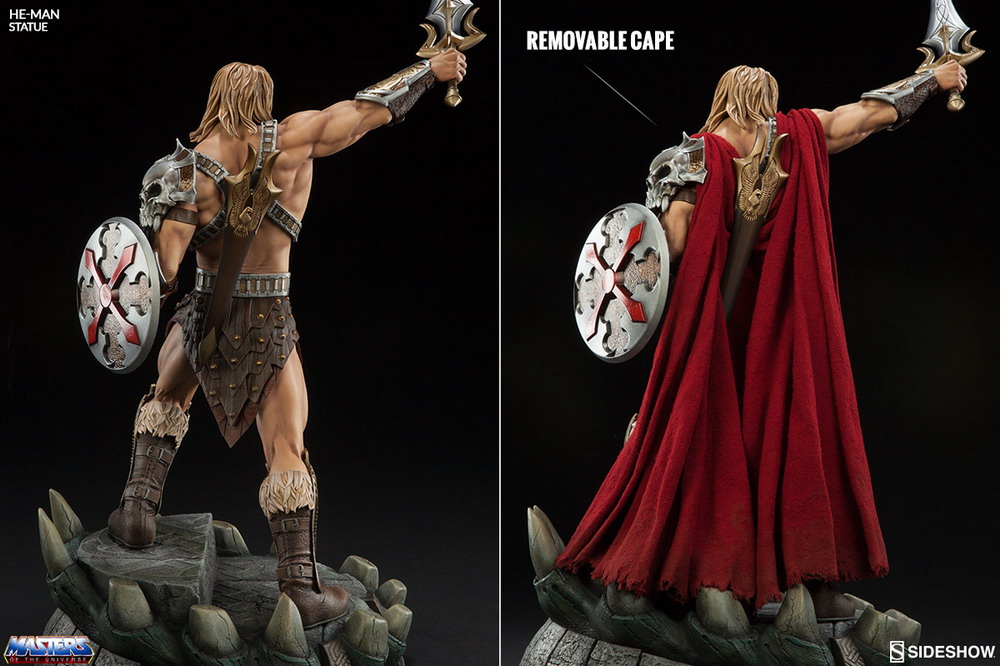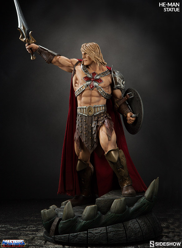Sideshow unveils He-Man, the first release in a new statue collection inspired by the popular 80’s cartoon series Masters of the Universe. Standing an 23-inches tall, Prince Adam of Eternia holds aloft his indestructible magic Power Sword as he transforms into He-Man, the mighty champion of Castle Grayskull! Sideshow’s artists have re-imagined the muscular hero with his trusty shield, intricately detailed armored pteruges, boots and gauntlets, his strength-magnifying breastplate and power harness, and a magnificent removable cape.