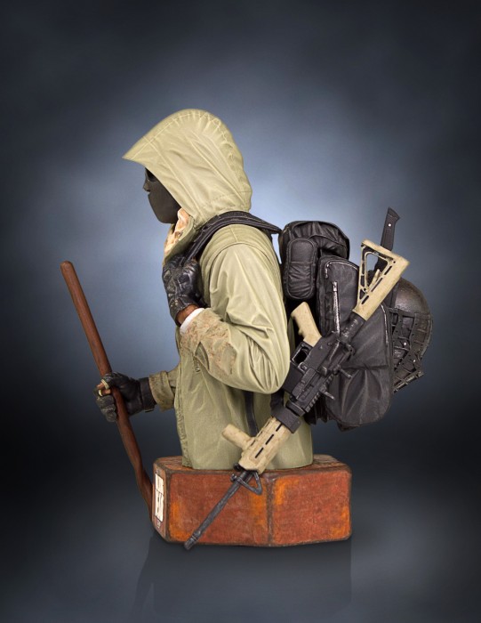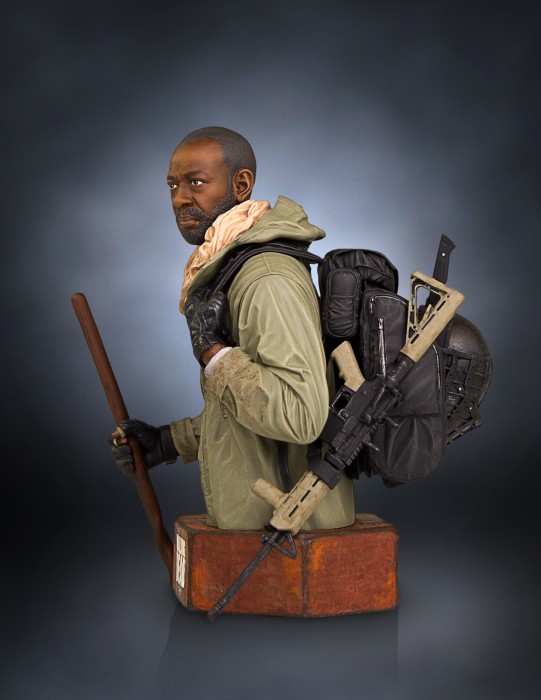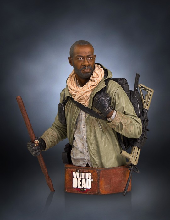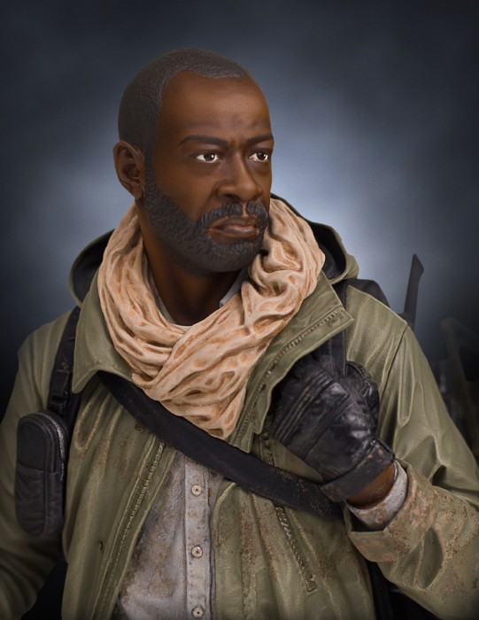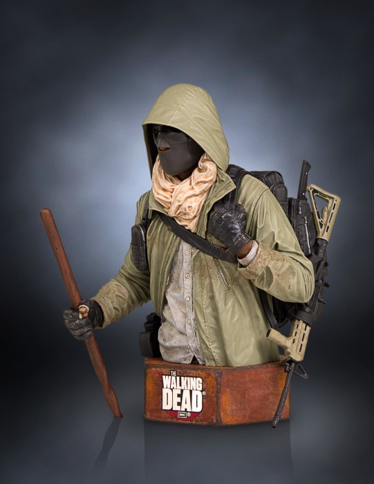 Gentle Giant presents their latest 1:6th scale resin bust from AMC's The Walking Dead: Morgan Jones, the staff-wielding survivor on the show. Priced at $130 and scheduled to ship third quarter 2016, the bust features two interchangeable head sculpts: Morgan hooded and wearing a face mask and one portrait without.