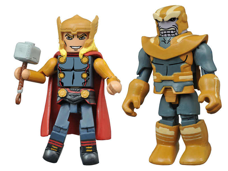 - From Marvel’s Avengers Assemble, “Dark Avengers” Thor with his hammer Mjolnir and an alternate helmetless hair piece, and Thanos, the universe-conquering Titan.