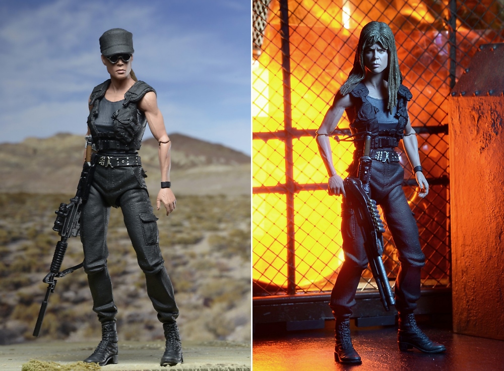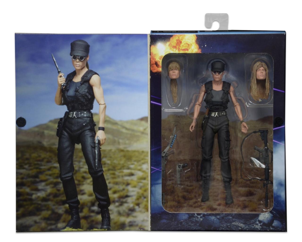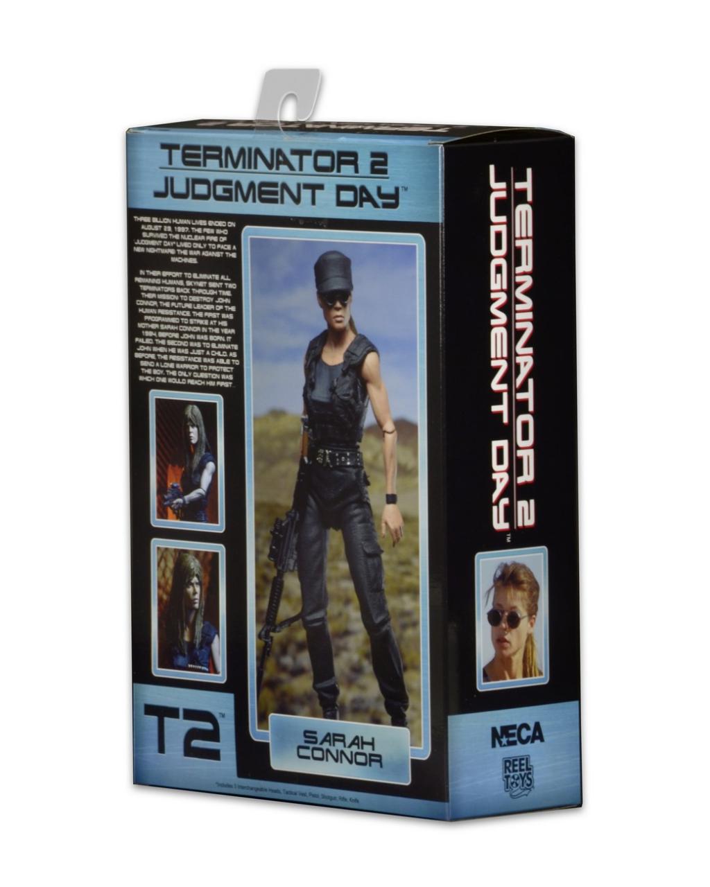 NECA has posted tons of new photos showcasing their latest "Ultimate" action figure: Sarah Connor as seen in Terminator 2: Judgment Day. The 7-inch action figure set includes everything you need to get two distinct Sarah Connor looks. Featuring the authorized likeness of Linda Hamilton and over 25 points of articulation, the figure comes loaded with accessories: three interchangeable heads, removable tactical vest, plus rifle, shotgun, handgun and knife. Comes in collector-friendly deluxe window box packaging.