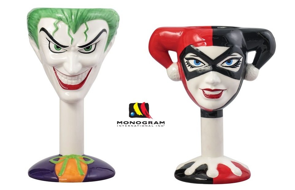 Toast the villains of DC Comics with Monogram's new collectible character goblets! Terrorize the streets of Gotham with the Clown Prince of Crime, The Joker, along with his sinister sexy sidekick Harley Quinn! These character goblets look great on their own or put them to good use with your favorite beverage. Makes a great gift for DC fans!