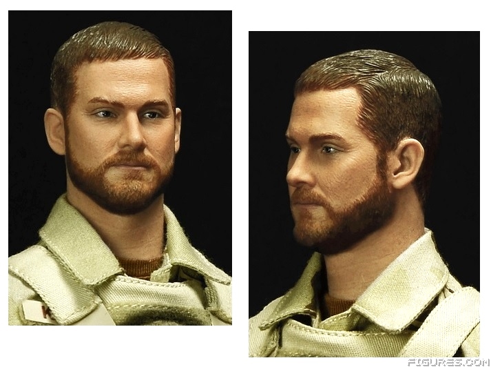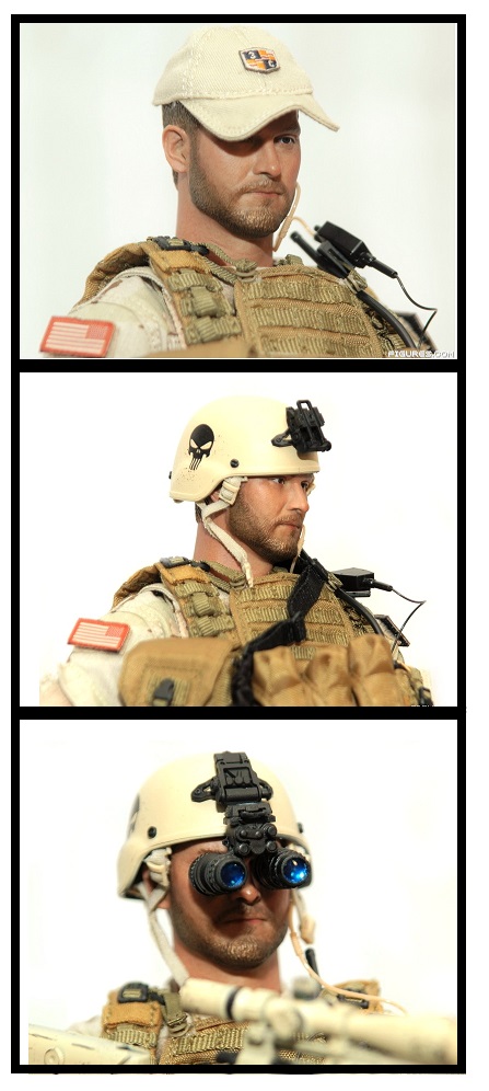 The figure itself is based on an E&S 1.0 body, standing 12” tall and featuring full articulation in all primary joints: neck, shoulders, biceps, elbows, wrists, torso, waist, hips, thighs, knees and ankles. The figure’s head sculpt features an accurate likeness of Chris Kyle during his active-duty years (below).