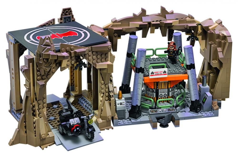 • The Batcave incorporates a hi-tech, 2-floor Bat Lab with Batcomputer element and a variety of detachable accessory elements, including a lie detector machine, table, chest of drawers, Bat-gadgets and test tubes with translucent elements. Also includes the iconic Batcave entrance for the Batmobile and a helipad for the Batcopter.