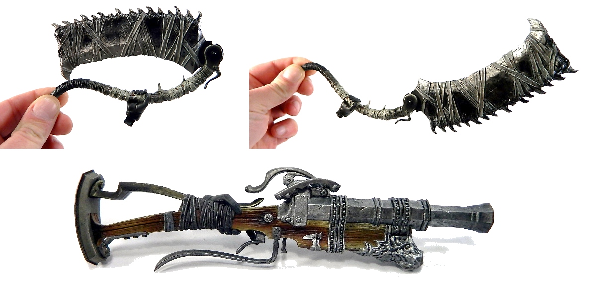 For a pose, Gecco safely (and wisely) went with the Hunter as he appears on the game's cover art: our hero standing defiantly with weapons at the ready. While not the most action-oriented pose, it's not only instantly recognizable, but it allows the Hunter's monster-slaying weapons to truly standout on display. This part is important because Gecco has plans to release additional weapons as part of the Bloodborne Arms Collection (see our story HERE). So far only the Hunter Axe has been revealed, but the prospect of being able to further customize your statue is brilliant. As is, the Hunter Blunderbuss and Saw Cleaver that come with the statue are beautifully sculpted. While the Blunderbuss looks super cool, the Saw Cleaver is the true star of the show with its ability to actually swing open for two distinct display options. These weapons come with the Hunter's hands pre-attached to them and plug in easily at the wrist. Swapping them out for new weapons shouldn't be any problem.