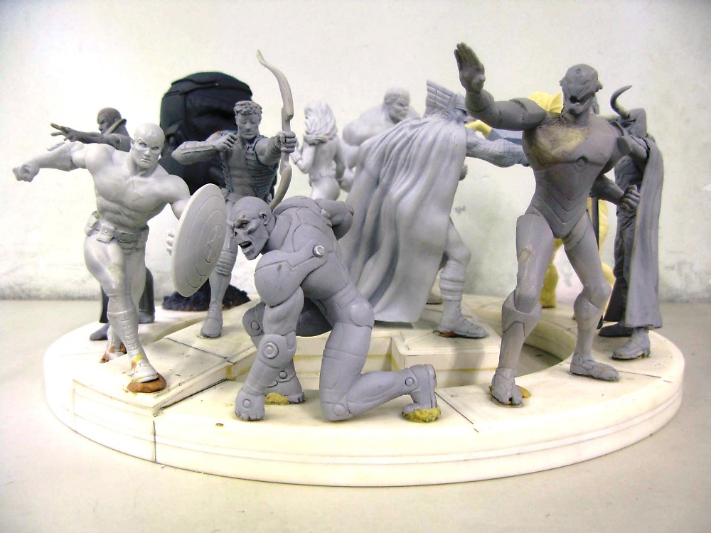 Pictured above is the artist hard at work on Black Widow, along with a completed Captain America sculpture unpainted and in his rawest form.
