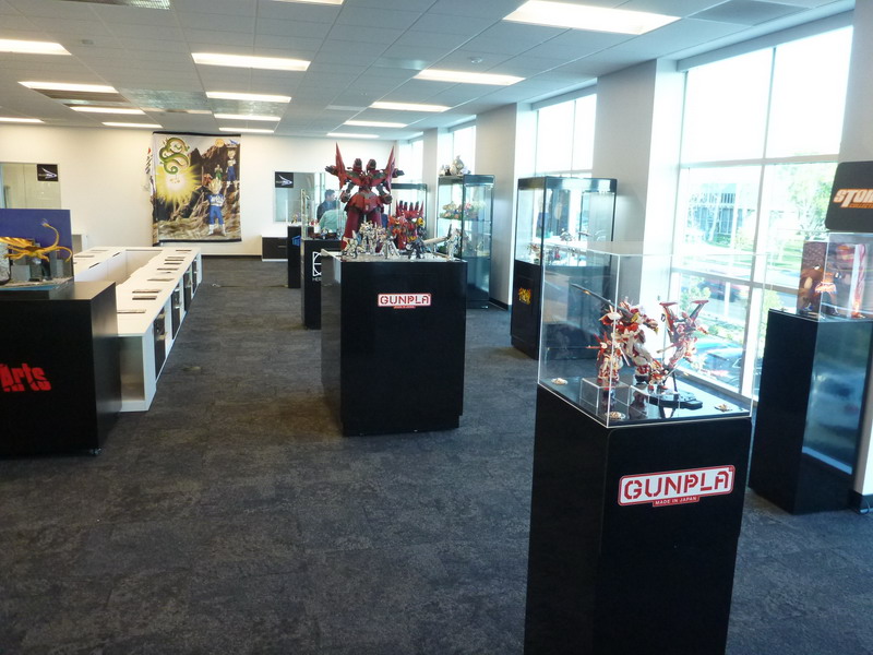 New York Toy Fair was a hotspot of activity for the toy and collectibles industries, but it wasn’t the only event happening in the country last week. There was also a fairly exclusive Open House shindig at the new offices/warehouse of Bluefin in Souther California. Bluefin, as you well know, is the U.S. importer of Bandai Tamashii Nations (S.H. FiguArts, MonsterArts, etc.) plus a litany of other cool companies and products from all over the world. We covered the huge Bluefin presence at Toy Fair (see that HERE), and then just two days later I was walking into a sleek lobby flanked by a 6 foot tall Gundam robot and a life-size Hulkbuster Iron Man armor from Avengers: Age of Ultron! After check in the attendees got to have a look at the facility which included an upstairs showroom, offices, and a sprawling warehouse space.