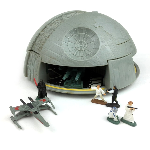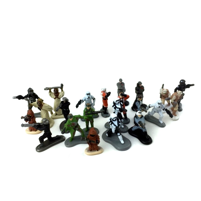 As the line progressed, an entire rogue squadron of X-Wings could attack an imperial base; Star Destroyers could pursue the Millennium Falcon across systems, and a legion of Stormtroopers could descend on a rebel hideout—all of which one could store in a quart-size zip lock bag when he was finished. Galoob went on to release army builders, transforming playsets, and various limited edition pieces cast in bronze and silver-colored plastics. God alone knows how many hours I spent playing with these toys.