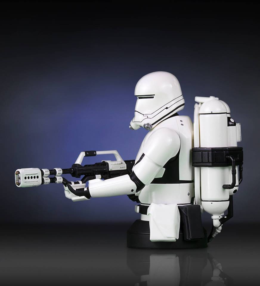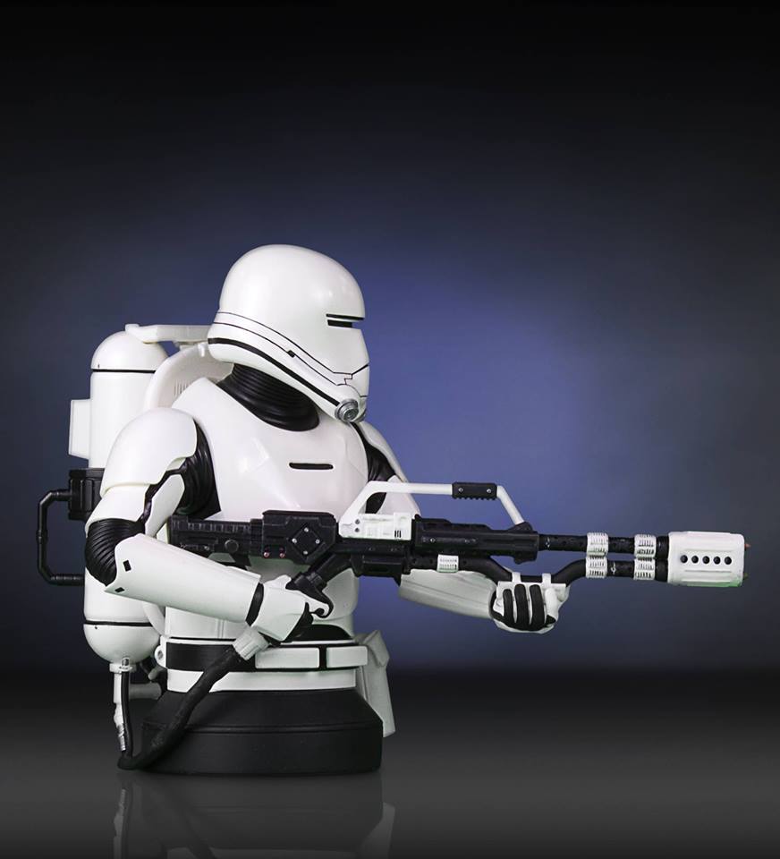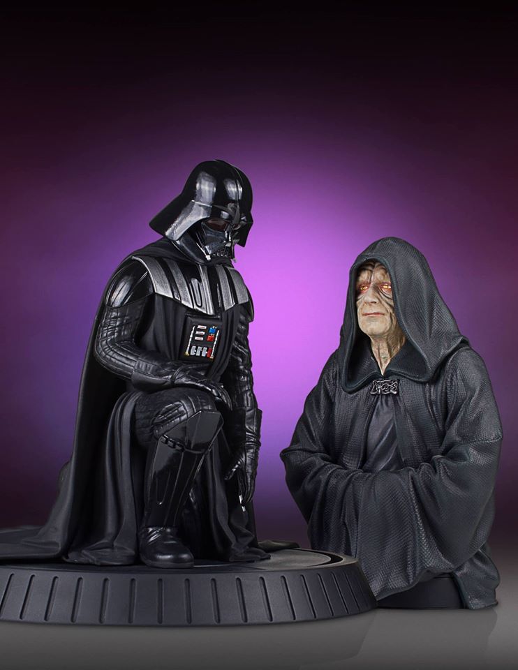 Gentle Giant presents two new Star Wars pre-order items for March. The first release continues Gentle Giant's 1:6th scale bust line from The Force Awakens: The First Order Flametrooper. Priced at $120, this cool trooper design measures H 7” x W 8” x D 6” and is scheduled to release 4th Quarter 2016. The second sculpture depicts Darth Vader in a scene from The Empire Strikes Back. The 9" scale Sith Lord is shown bowing in devotion to his master, Emperor Palpatine. Priced at $159.99, the Darth Vader Collectors Gallery Statue is also expected to arrive 4th Quarter.