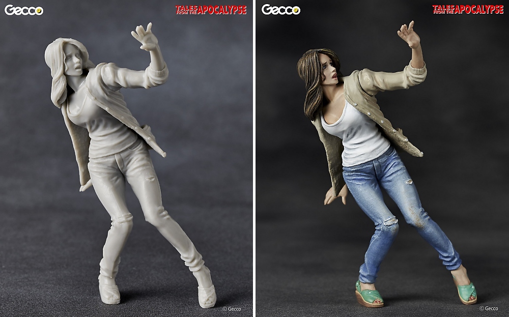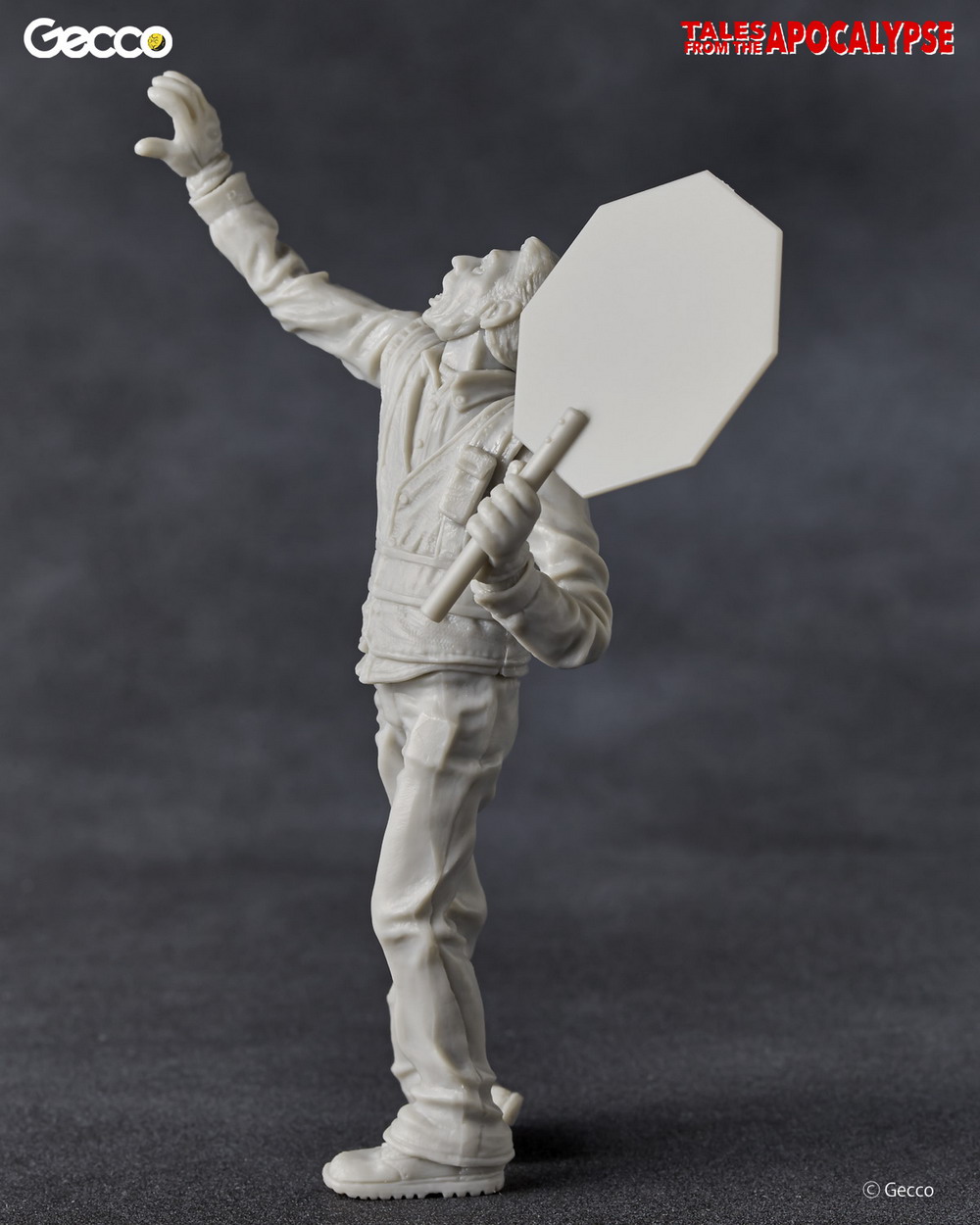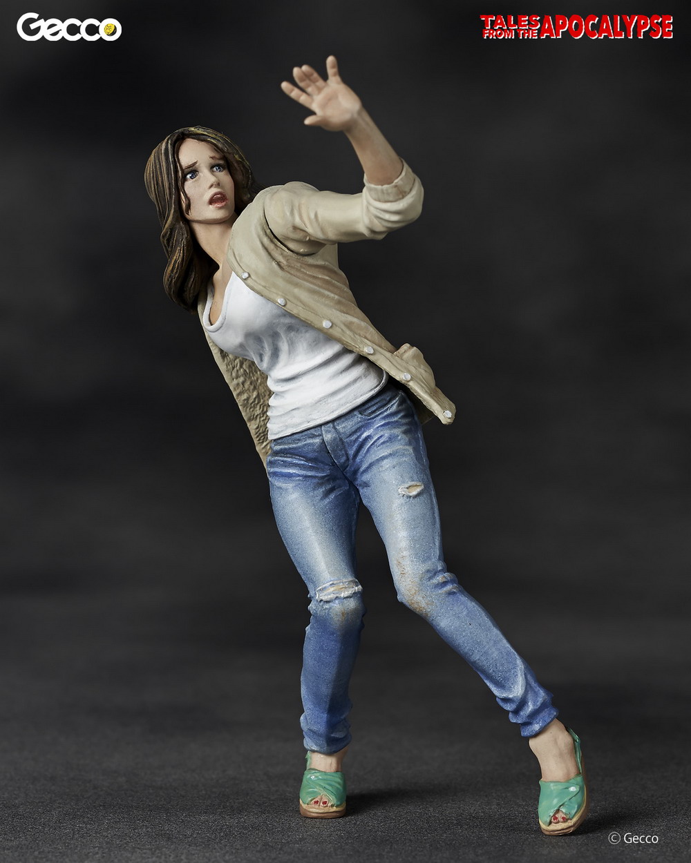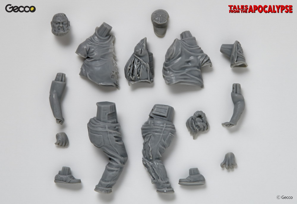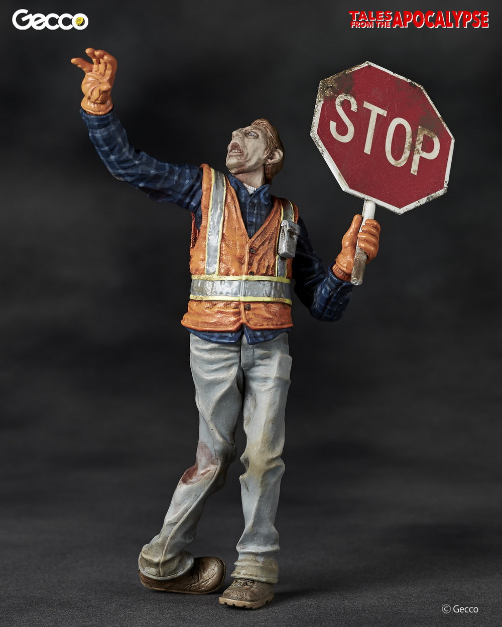 Gecco presents Tales from the Apocalypse, a new series of 1/16th scale Zombie plastic model kits. The premise of the line is styled after an old horror movie, the first wave of model kits capturing characters from a key moment in the make-believe movie: "Scene 1: Day 1, 11:50 am on Freeway". Even the packaging for each model kit is brilliantly designed to appear as a VHS tape box!