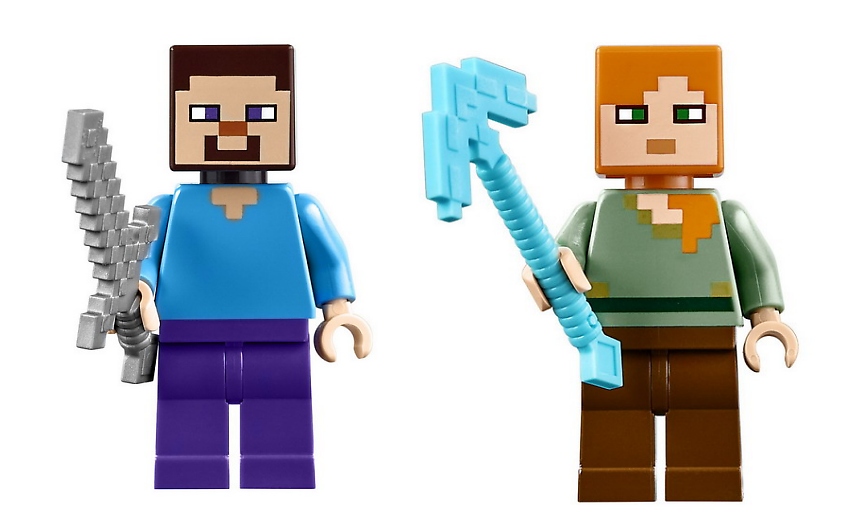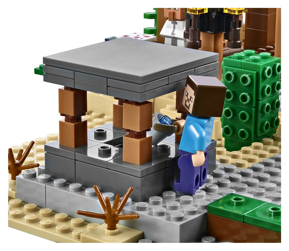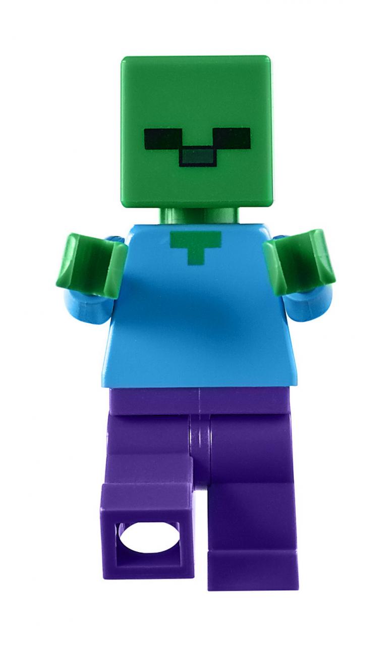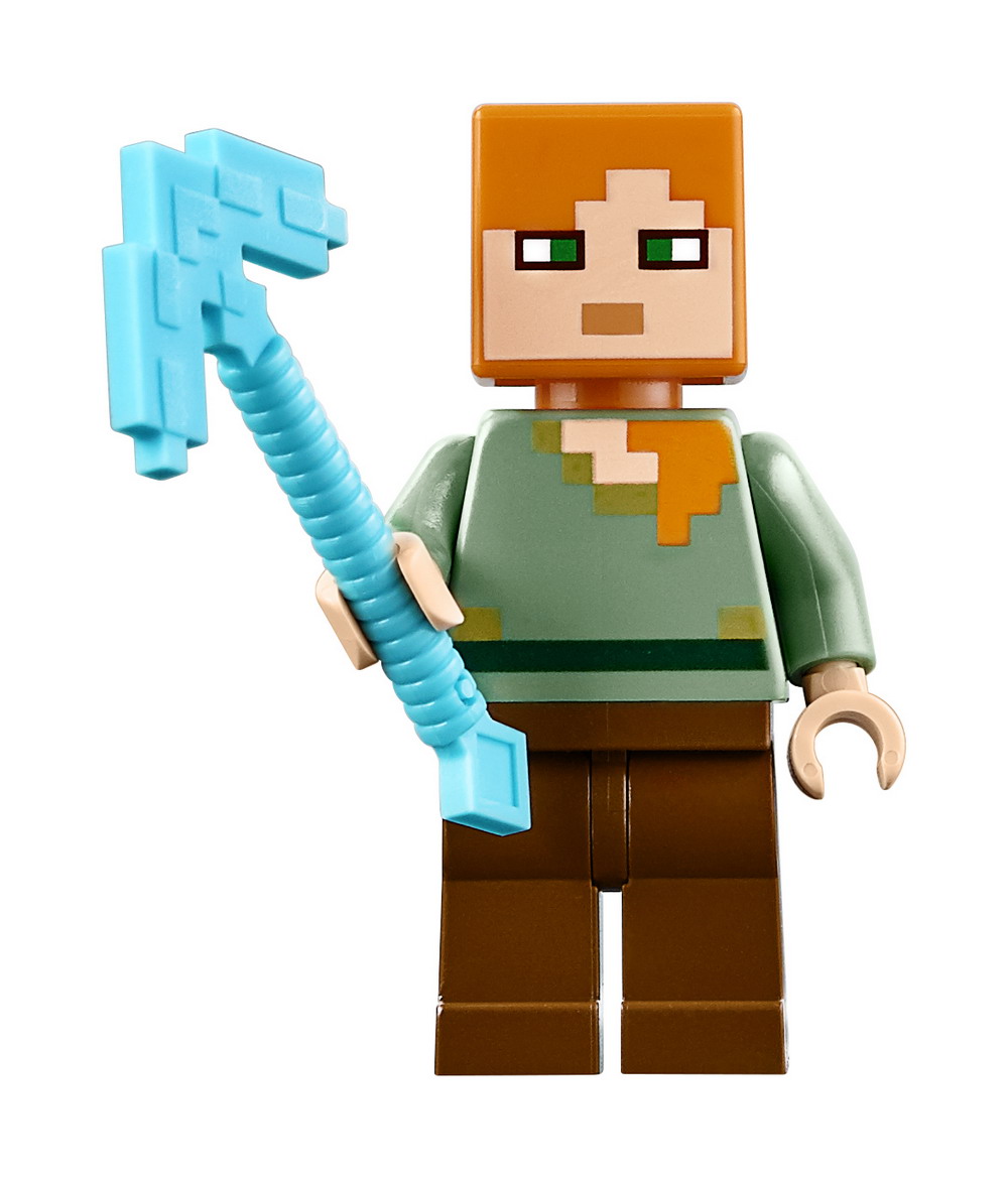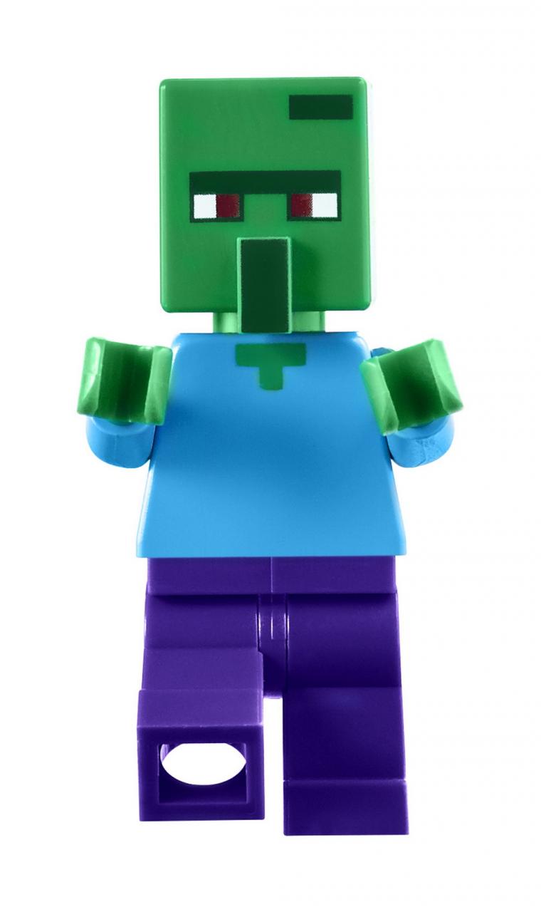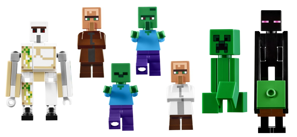 • Includes 4 minifigures: Steve, Alex, zombie and a zombie villager, plus a Creeper, enderman, pig, baby pig, iron golem and 2 villagers (a farmer and a librarian).