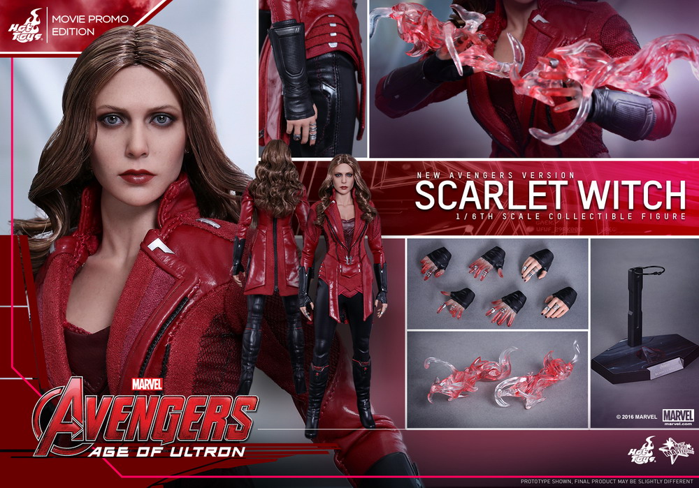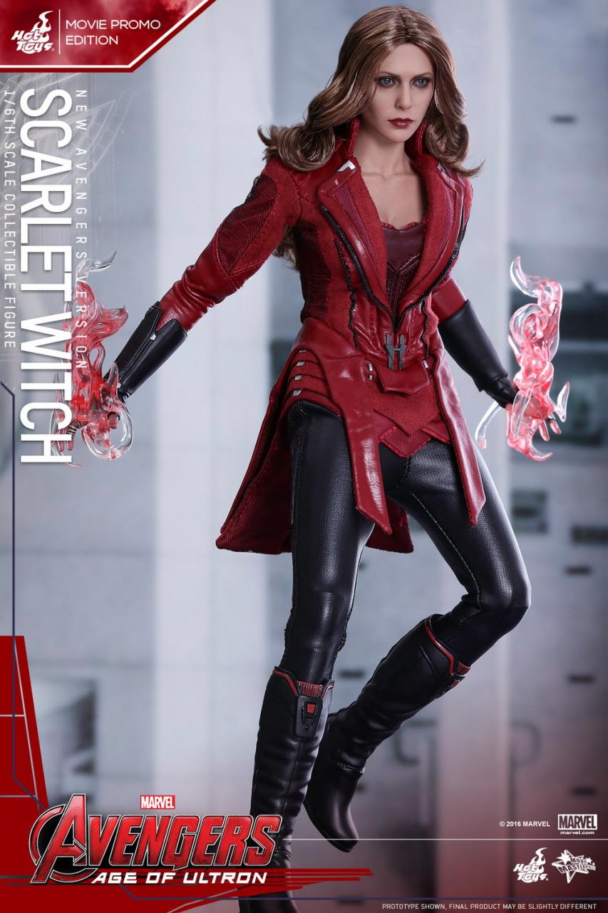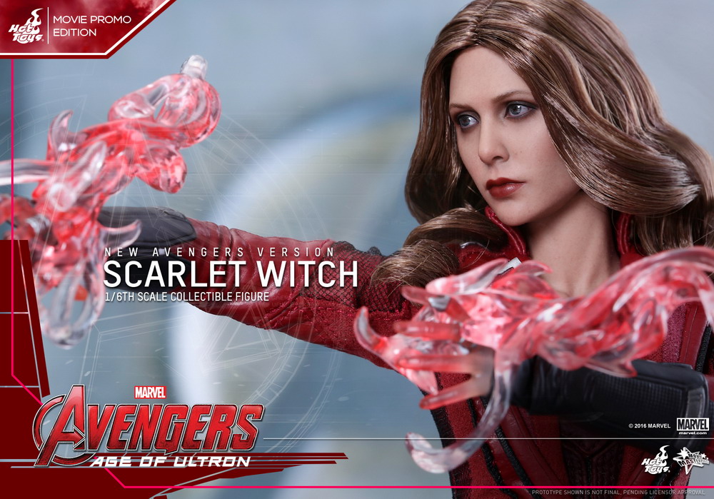 The movie-accurate collectible is specially crafted based on the image of Elizabeth Olsen as Scarlet Witch in the film featuring head sculpt with long curly light-brown real fabric hair and new makeup application, newly tailored costume, specially created hands with red translucent fingertips and effect accessories to simulate Scarlet Witch using her powers, and an Avengers: Age of Ultron themed figure stand.