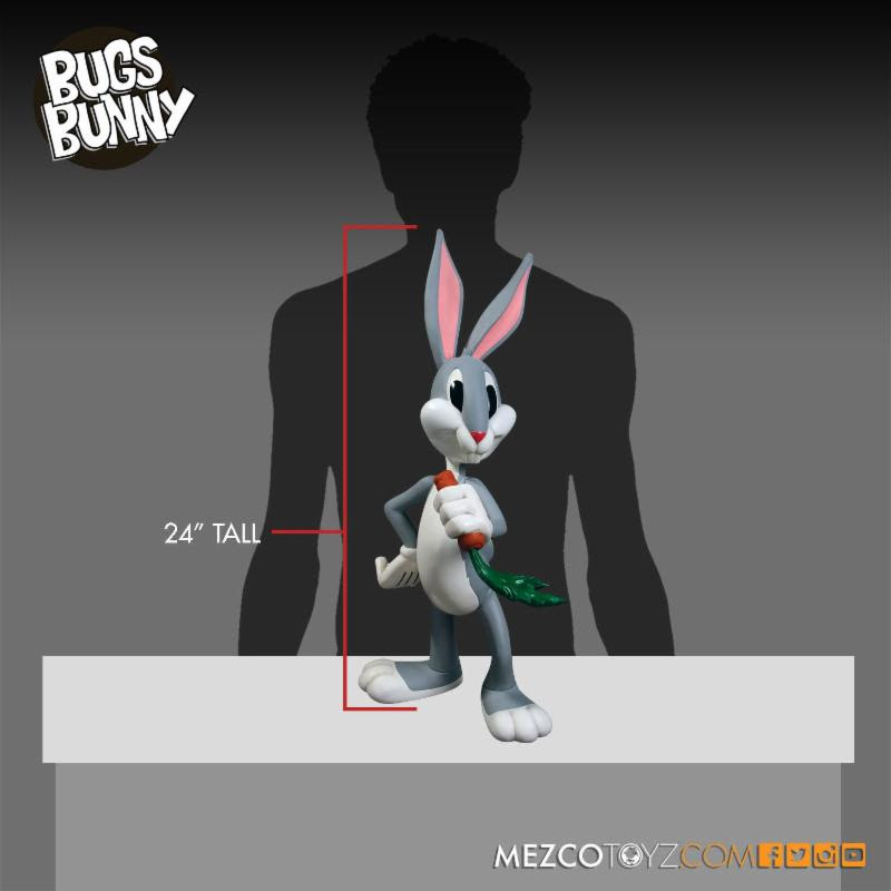 Now Mezco presents a super-sized action figure to match Bugs' super-sized stardom. From the tip of his ears to the bottom of his lucky rabbit's feet, he measures an astounding 24 inches tall.