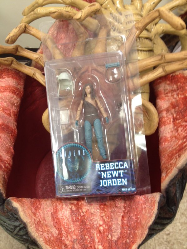 Carrie Henn (@RealCarrieHenn), the actress that played Rebecca "Newt" Jorden in the 1986 sci-fi film ALIENS, is celebrating #AlienDay426 by tweeting photos of her upcoming action figure from NECA. So far two pictures have been released (shown below) showing the young survivor clutching her treasured doll head, as well as wearing a Colonial Marine helmet. These appear to be accessories that will comes with the figure. Stay tuned for further updates...