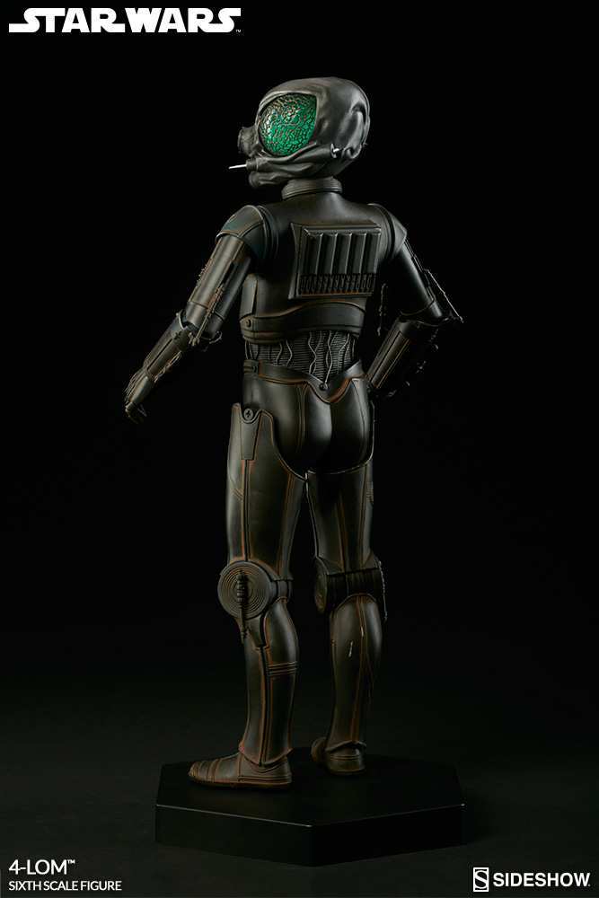 The 4-LOM Sixth Scale Figure will be priced at $210.00, with optional payment plans available. Pre-orders begin Thursday, April 28. 4-LOM will be exclusively available through Sideshow.com with limited availability in select international territories.
