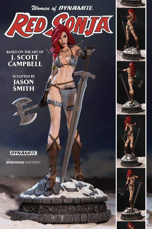 First up, comes Red Sonja, the She-Devil with a Sword, poised on a snow-covered battlefield, never having looked so majestic! Based on the original design of comics sensation J. Scott Campbell and sculpted by the talented Jason Smith, Hyrkania's most lethal warrior stands approximately 11.5" in height upon a decorative 5.5" wide base. Hand-painted on cold-cast porcelain with ABS details, this highly-detailed statue comes individually numbered as part of a limited edition run, and is packaged in a four-color box with a hand-numbered Certificate of Authenticity.