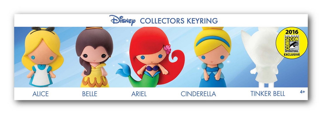 Fans can pick up the Disney Princessess 3D Foam Key Ring Set exclusively during San Diego Comic Con, July 20-24, at Monogram's booth #3645. The set will be priced at $45 and limited to only 400 pieces.
