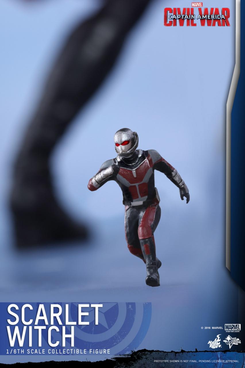 The highly-accurate collectible is specially crafted based on the image of Elizabeth Olsen as Scarlet Witch in the film featuring head sculpt with long curly brown real fabric hair and new makeup application, brand-new and specially tailored costume, interchangeable hands with red translucent fingertips and effect accessories to simulate Scarlet Witch using her powers, and an Captain America: Civil War themed figure stand. Furthermore, an approximately 2.5cm tall miniature running Ant-Man is included as a bonus accessory!