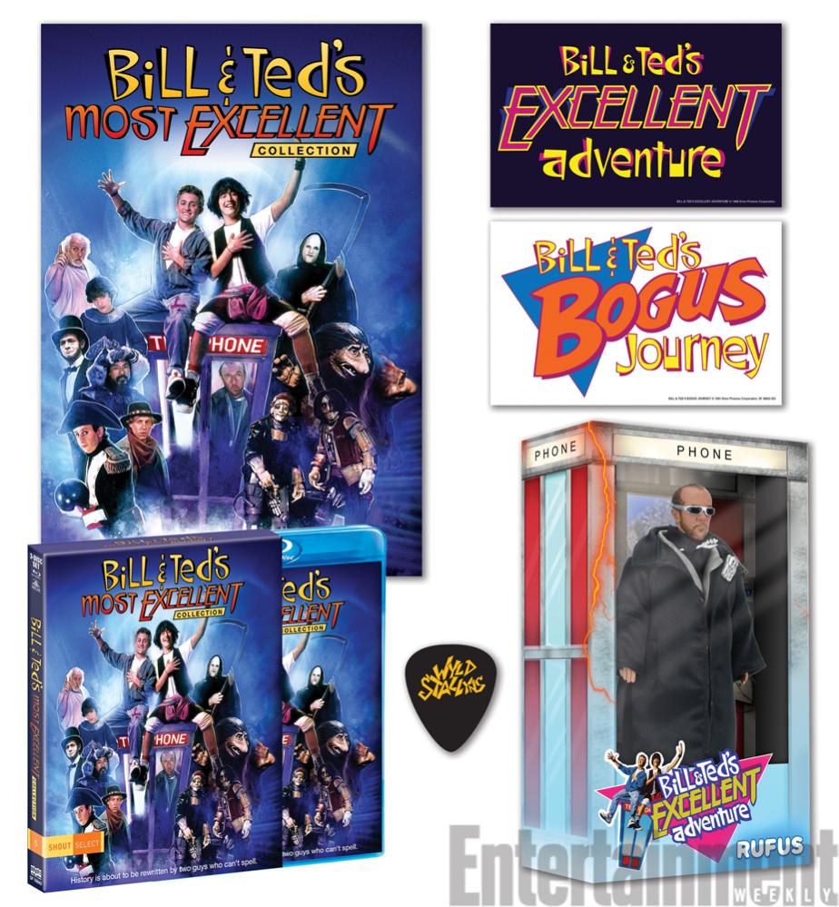 Entertainment Weekly reports that Shout! Factory is releasing a deluxe Blu-ray box set called Bill & Ted’s Most Excellent Collection. The set features 1989’s Keanu Reeves- and Alex Winter-starring Bill & Ted’s Most Excellent Adventure, the Blu-ray debut of its 1991 sequel Bill & Ted’s Bogus Journey, an entire disc of bonus features including new interviews and commentary, a “Wyld Stallyns” guitar pick, and vinyl stickers.
