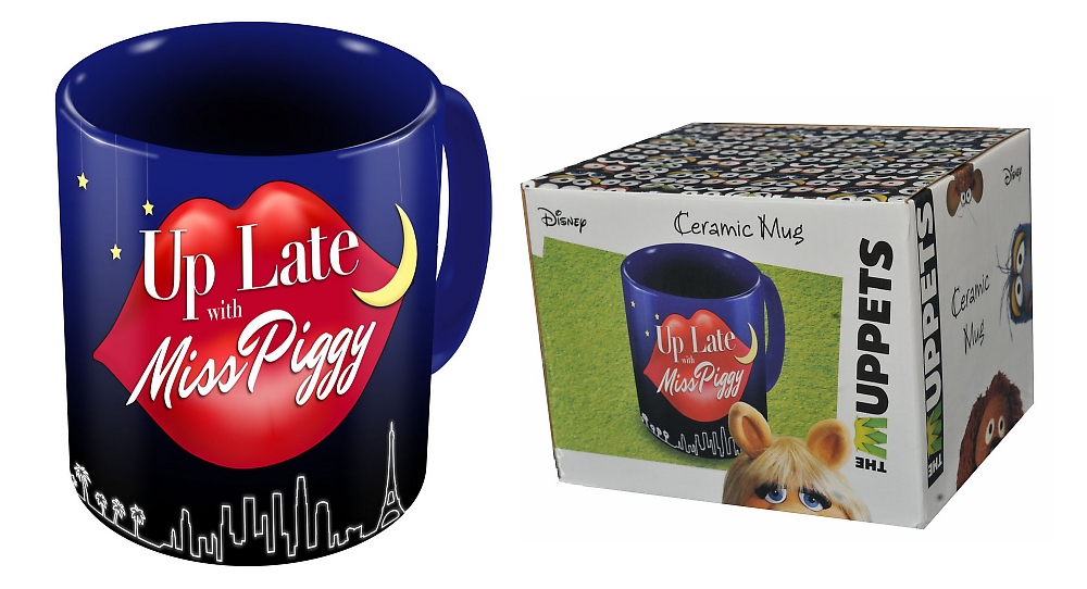 Tonight on Up Late with Miss Piggy, the show will welcome a very special guest star – you! With this ceramic mug featuring the Up Late logo, you’ll feel just like a guest on Miss Piggy’s late night talk show – or perhaps like the hostess herself! Justify your diva behavior with this mug telling people that you run the show, and it’s your way or the highway! Packaged in a full-color window box. Hand-wash only. (Item # JAN162258, SRP: $15.99)