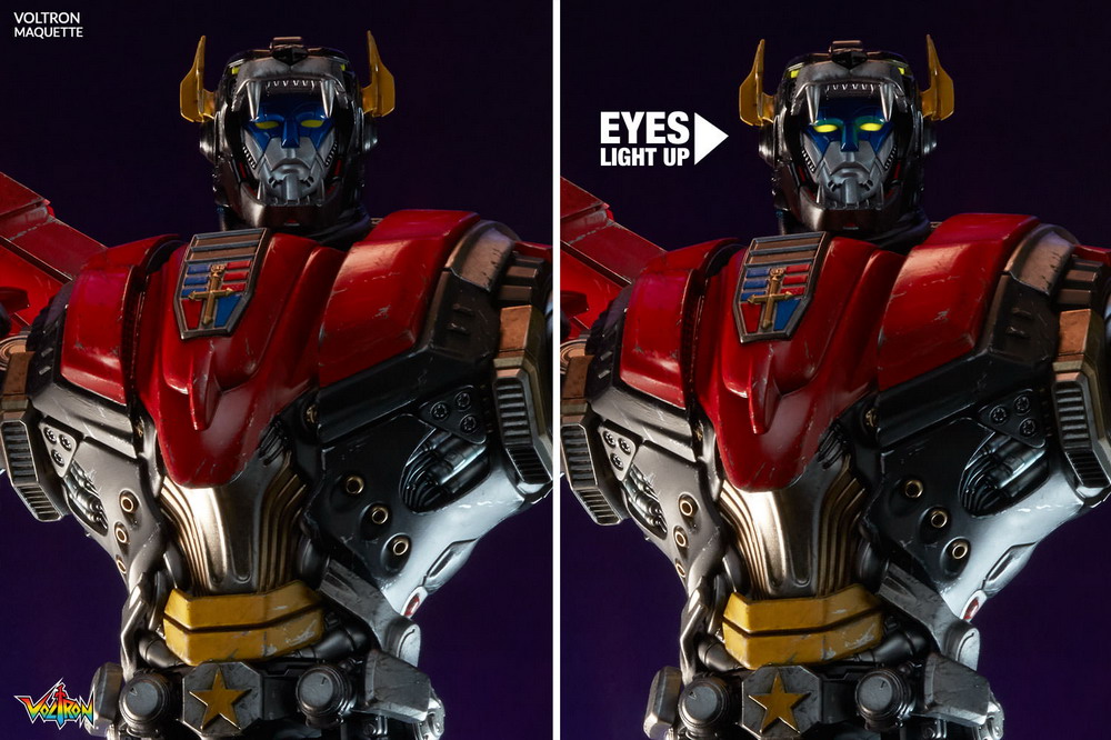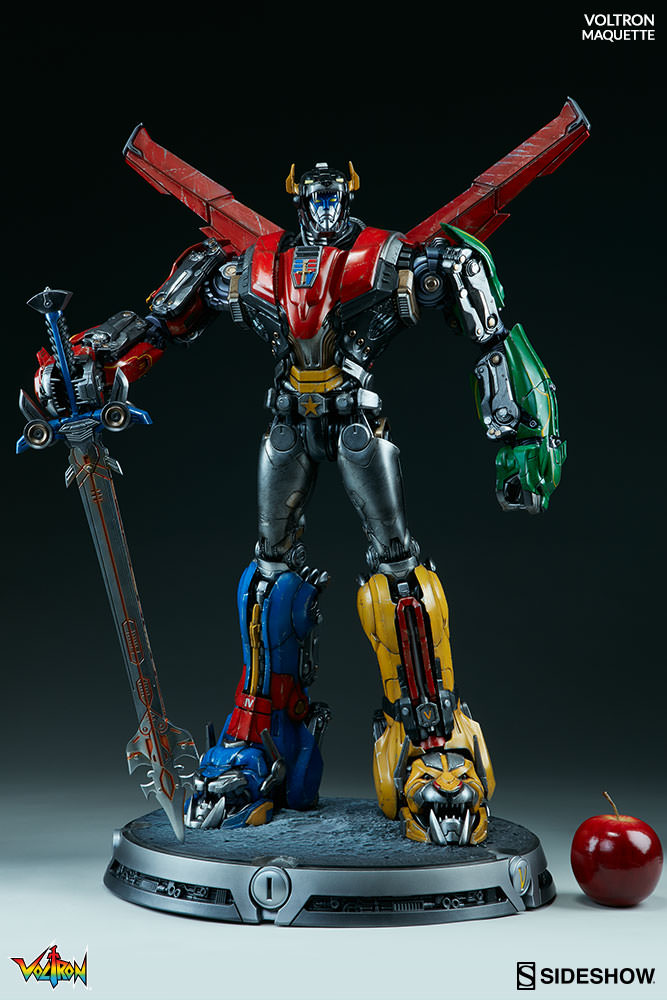Sideshow presents the Defender of the Universe, Voltron, as a new collectible maquette. Standing at an impressive 27” tall, the Voltron Maquette is our own unique interpretation of the iconic cartoon series robot. The artisans at Sideshow have crafted a piece that features well-earned battle damage alongside the instantly recognizable cats that form the mighty robot.