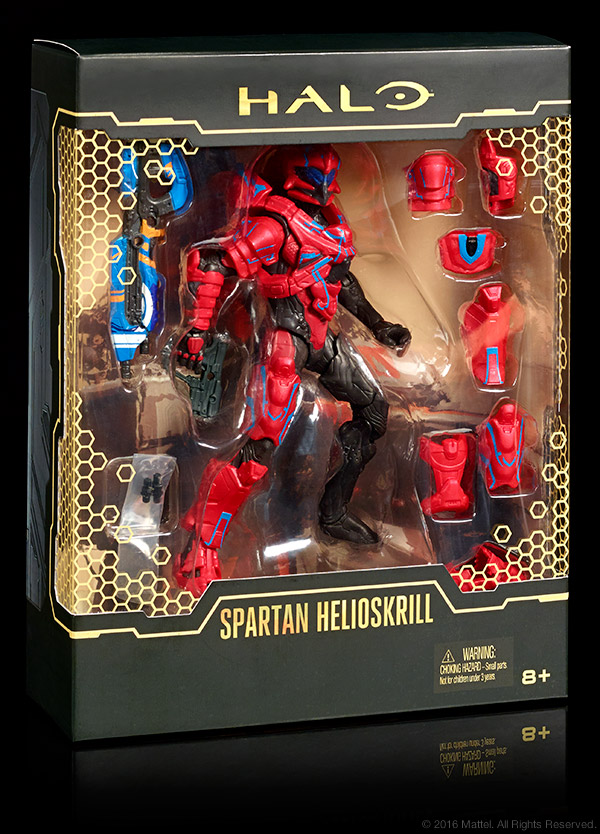 The exclusive HALO Spartan Helioskrill Action Figure will be available for pre-order at MattyCollector.com on June 16, 2016 for subscribers only (Early Access), and from June 17 through June 26 for everyone else (All Access). The figure will be priced at $25. Orders must be picked up in person at San Diego Comic-Con. Products will also be available for purchase at the convention.