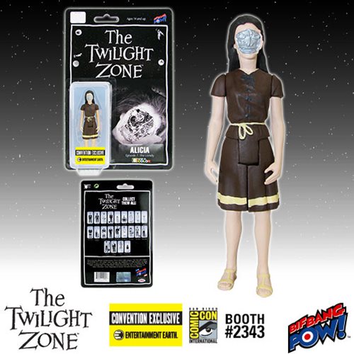 The Twilight Zone Alicia 3 3/4-Inch Action Figure In Color - Convention Exclusive celebrates the female robot companion in the heart-wrenching episode "The Lonely." This rare, limited figure showcases Alicia in her worst moment, after being shot leaving her mechanical facial wiring exposed. Is she just machine or something more? Only you can decide.