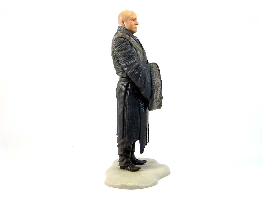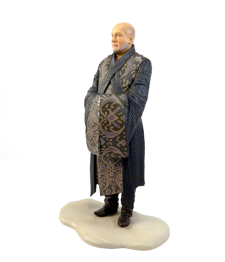 Dark Horse continues their extensive Game of Thrones figure series with an excellent rendition of Varys. Bald and slightly overweight, Varys isn't the most interesting character to look at as far as collectibles go. On the other hand, his wardrobe of flowing robes have always been a looker - the costume department for Game of Thrones is second to none. Dark Horse captures this particular outfit quite nicely, giving Varys a calm, worldly vibe. Their sculpt of Conleth Hill is also some of Dark Horse's best work in the line. Yes, Varys being bald does help establish the portrait, but the eyes and expression are dead-ringers for the character.