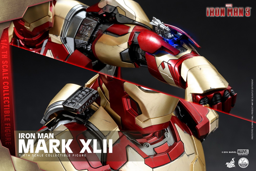 The Iron Man Mark XLII, Tony Stark’s iconic main armor in Marvel’s Iron Man 3, is making a return in a “big” way! Hot Toys is delighted to create more amazing collectible figures for all the Iron Man fans around the world and very excited to officially introduce today the stunningly detailed 1/4th scale Mark XLII collectible figure from Iron Man 3!