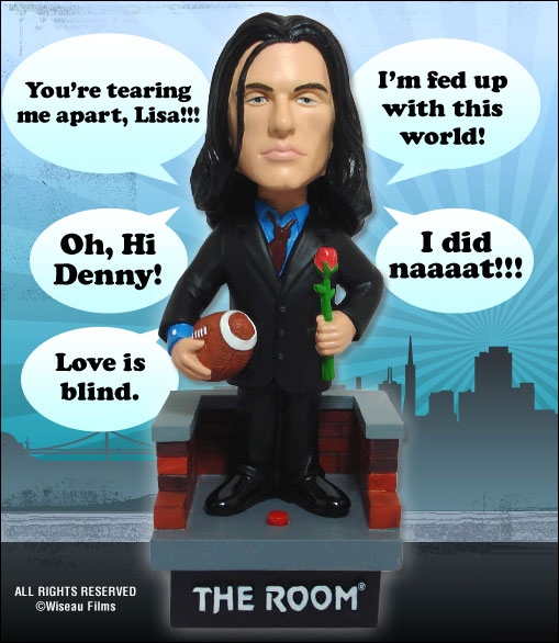 [HR][/HR]Jason Cuadrado, CEO of Kulture Kick brings to our attention a new talking bobblehead of Johnny, the main character in the cult indie film The Room. Officially licensed through Wiseau-Films, the bobblehead will measure 7-inches tall and will feature Johnny carrying a rose for Lisa and a football for playing catch with Denny. A limited run of the Talking Johnny Bobbleheads will be available this December through www.theroomstuff.com.
