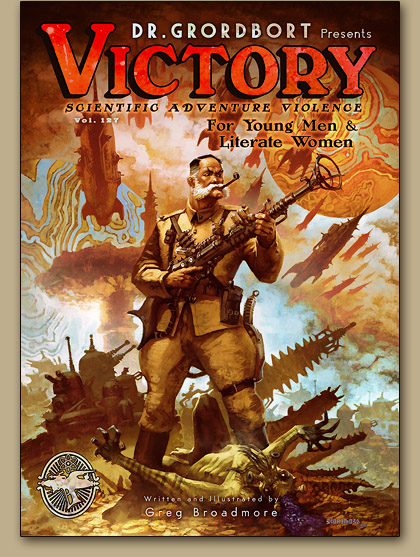 In related Raygun news, WETA is also accepting pre-orders on their newest Dr. Grordbort book: Victory! Scientific Adventure Violence for Young Men and Literate Women. Following the style of Dr Grordbort's Contrapulatronic Dingus Directory released last year, this sci-fi stuffed hardback is slated to satisfy fans mid-November priced at around $24 US. For an amazing preview of this book, CLICK HERE!