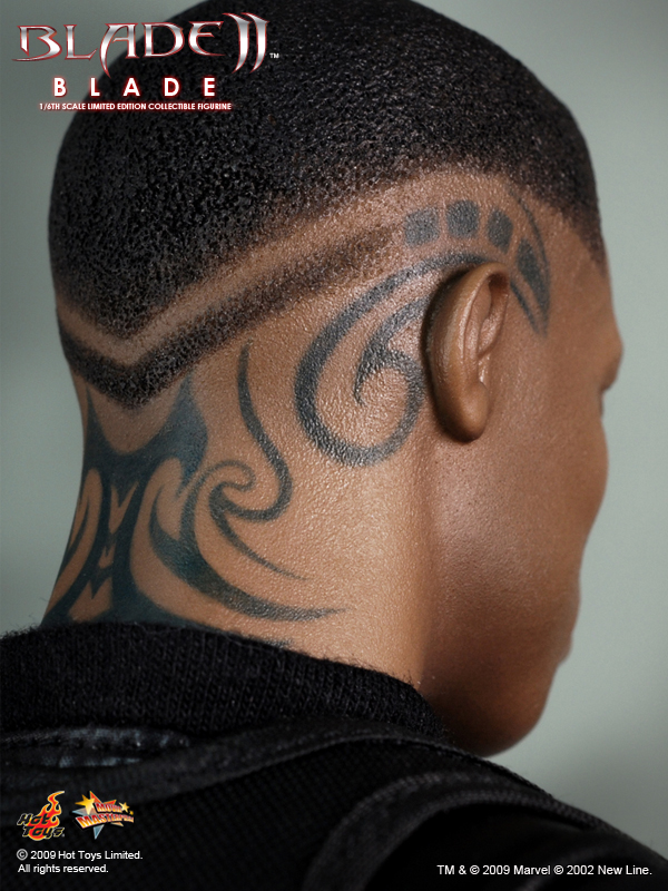 - Lifelike head sculpt with Blade’s signature tattoos at back
