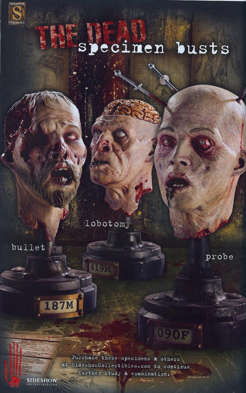 The Dead Specimen Busts line features gory, realistically sculpted zombie heads that will surely compliment your "The Dead" collection. Expect word on pre-ordering these delightfully horrific in the next day or so as Sideshow's Spooktacular 2009 comes to a close.