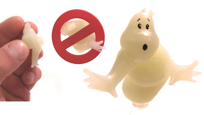 Well fear not GB fans! Mattel engineered the ghost’s head and right arm to pop off as one piece allowing you to remove the ring if you so desire. The “No Ghosts” ghost also glows-in-the-dark, another unexpected and cool extra.