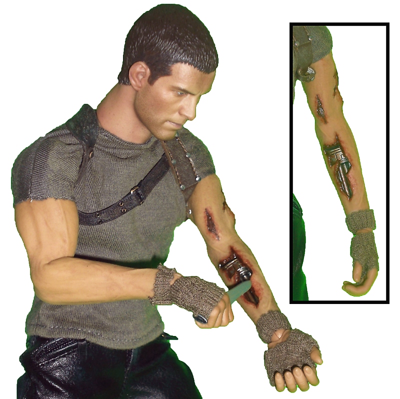ACCESSORIES: Unlike other Hot Toys figures, Marcus Wright does not include a lot of accessories but the abundant wardrobe pieces that accompany the figure makes up for the lack of extra items. Although this is not a MMS DX figure, the packed-in extras offers collectors the choice of displaying Marcus in one out of three different looks. The movie-accurate wardrobe and accessories is the real "icing on the cake"for this figure!
