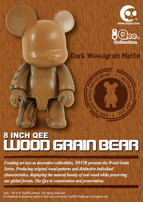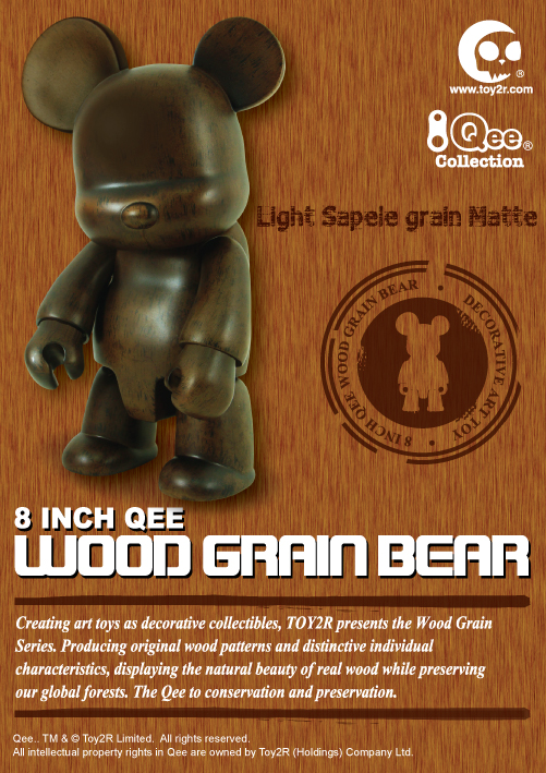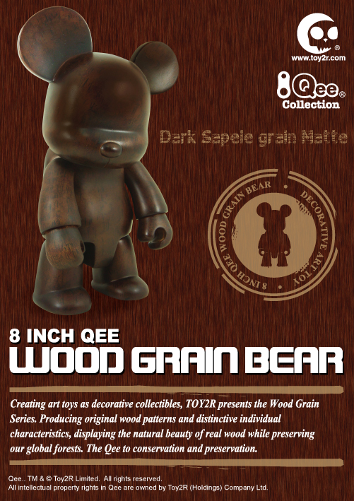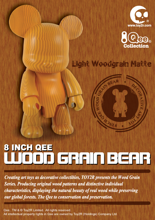 [HR][/HR]Due to popular response from collectors and fans, Toy2R announces the addition of five new Wood Style Finished 8" Qees. The first series of 2.5" and 8" Wood Qees tagged with Toy2R's logo on the chest have since sold out. Listening to requests from collectors - Toy2R has opted to release these new finishes without the logo to capture a true Wood Grain look perfect for any decor.