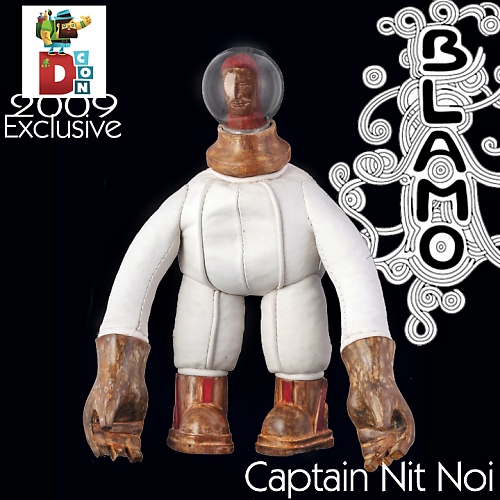 The newest edition to Blamo's high end "plush" line of figures, Captain Nit Noi rockets into the Blamoville universe. With his sparkling white jump suit, and space helmet made from an actual light bulb, the Captain is ready to moonwalk his way across your display shelf's! Only 10 will be produced in this color-way. 1/10 will be a special chase "Black Nit Noi" with a functioning light bulb for a head! Captain Nit Noi comes packaged in his own cardboard display box for $230.