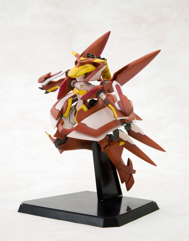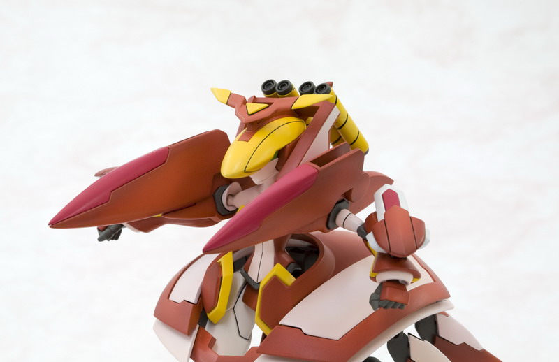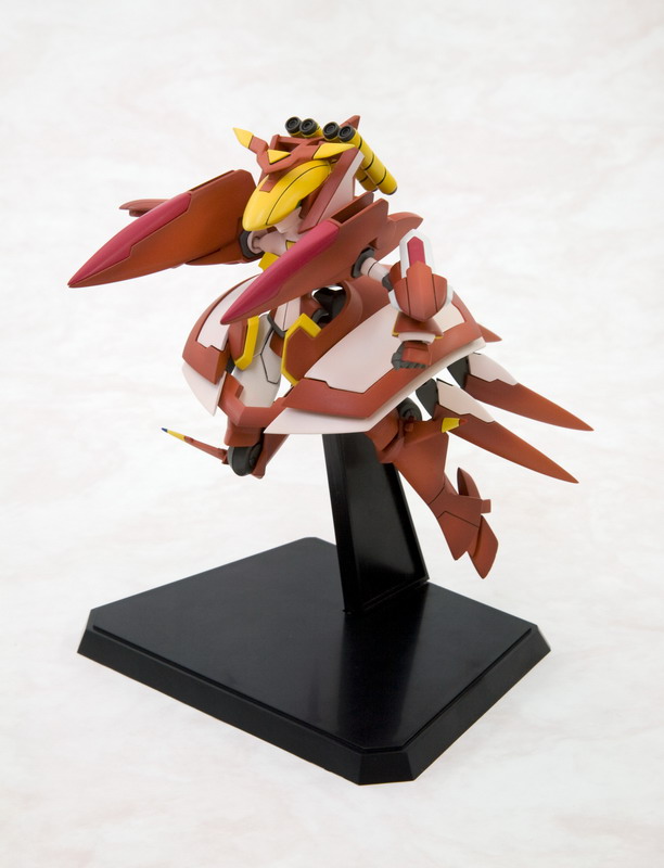 Assembly of the Fairylion Type-G Fine Scale Model Kit is easy, with parts cast in different colors and included pictorial instructions. The robot stands 5 inches tall (1/144 scale) and features approximately 20 points of articulation. The Fairylion bristles with weaponry including four Roll Cannons, Tesla Drive, Sonic Cutter and the mighty Assault Blade. You can position the Type-G according to your tastes with the included flying display stand, and with the Fairylion Type-S you can even recreate the Royal Heartbreaker Formation.