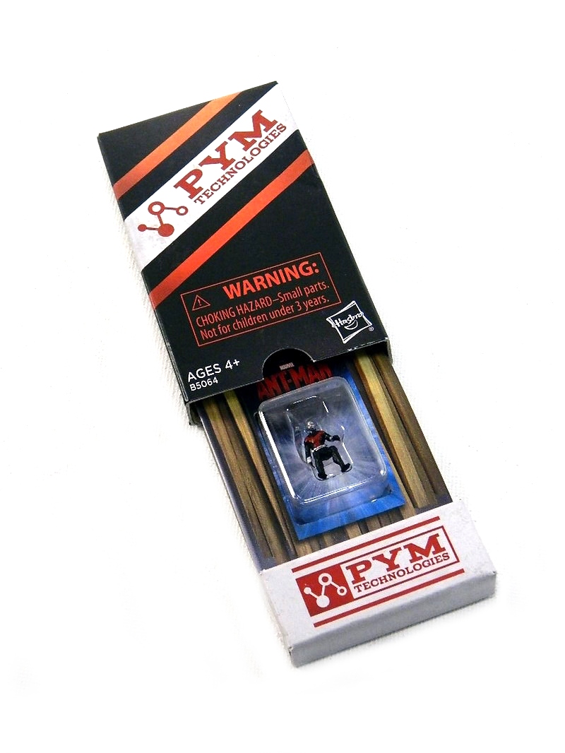 Measuring a wee 0.75 inches tall, this movie-accurate, non-articulated mini-figure comes in special packaging designed to mimic a matchbook. It's really the packaging here that is the star of the show, the matchbox tray sliding out to reveal the figure in an Ant-Man-sized blister card inside. As an avid toy opener, this is one of those rare exclusives that you can keep in pack and still technically open it up to enjoy the figure. Pretty cool.