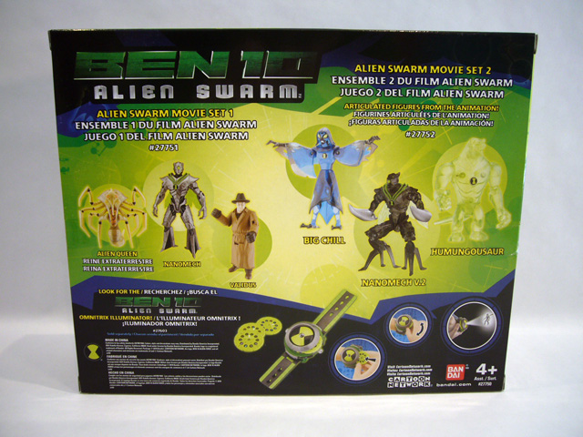 The back of the box has images of the included figures and those from the other Movie Set, along with an advertisement for the Omnitrix Illuminator role play toy.