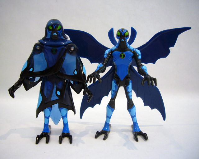 The Alien Swarm Move Sets are targeted at kids who have seen the film (they'll also love the included sticker), but their appeal is definitely wider. The figures are solid and look good, perfect for any Ben 10 collector or fan of interesting alien designs. The three Omnitrix aliens here all have at least some translucent parts and lots of character. Keep in mind that this Big Chill will be re-released as a single, but this may be the only way to get the others.