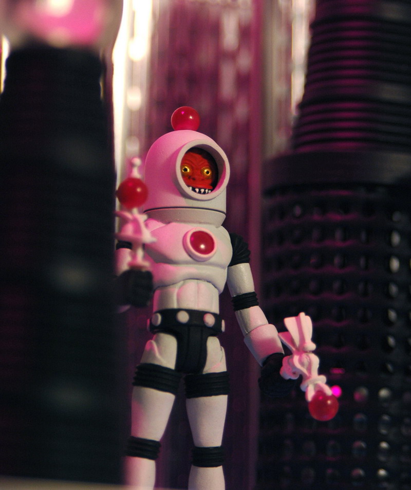 Collaborating closely with the property's creator, Mel Birnkrant, the Four Horsemen their first venture into licensed properties - The Outer Space Men! Already well into production, the first two 3-3/4 inch scaled waves of The Outer Space Men will consist of two characters per wave.