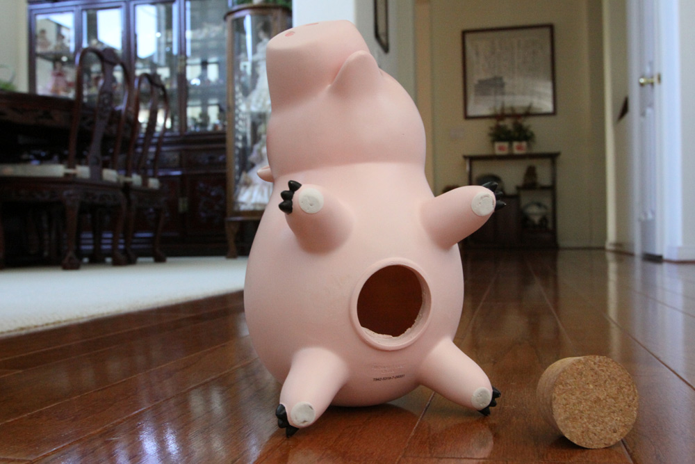 HAMM, one of the original Toy Story characters (voiced by John Ratzenberger), is oddly enough, not a toy. He's a piggy bank and probably one of the more fragile characters in the film. It's a miracle he didn't lose more than a few coins in his movie adventures. Hamm comes with a tag that has a caution note: NOT A TOY – DECORATIVE ITEM ONLY. And this "decorative item" can be yours for $19.50.