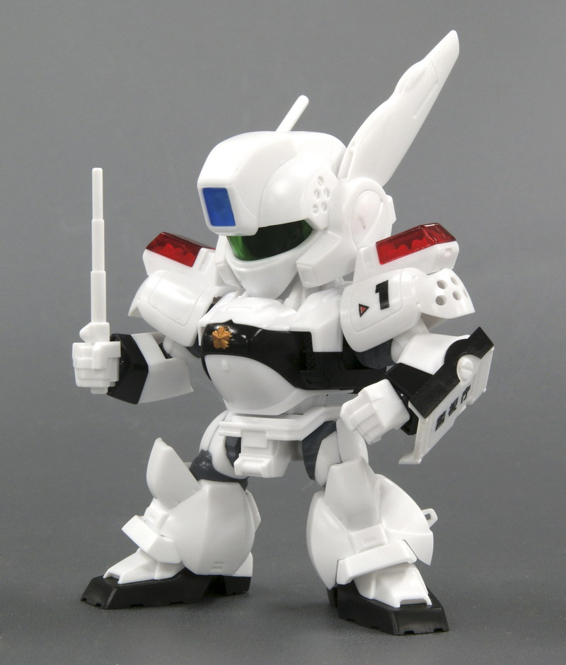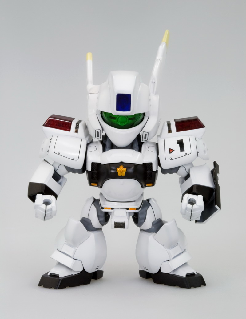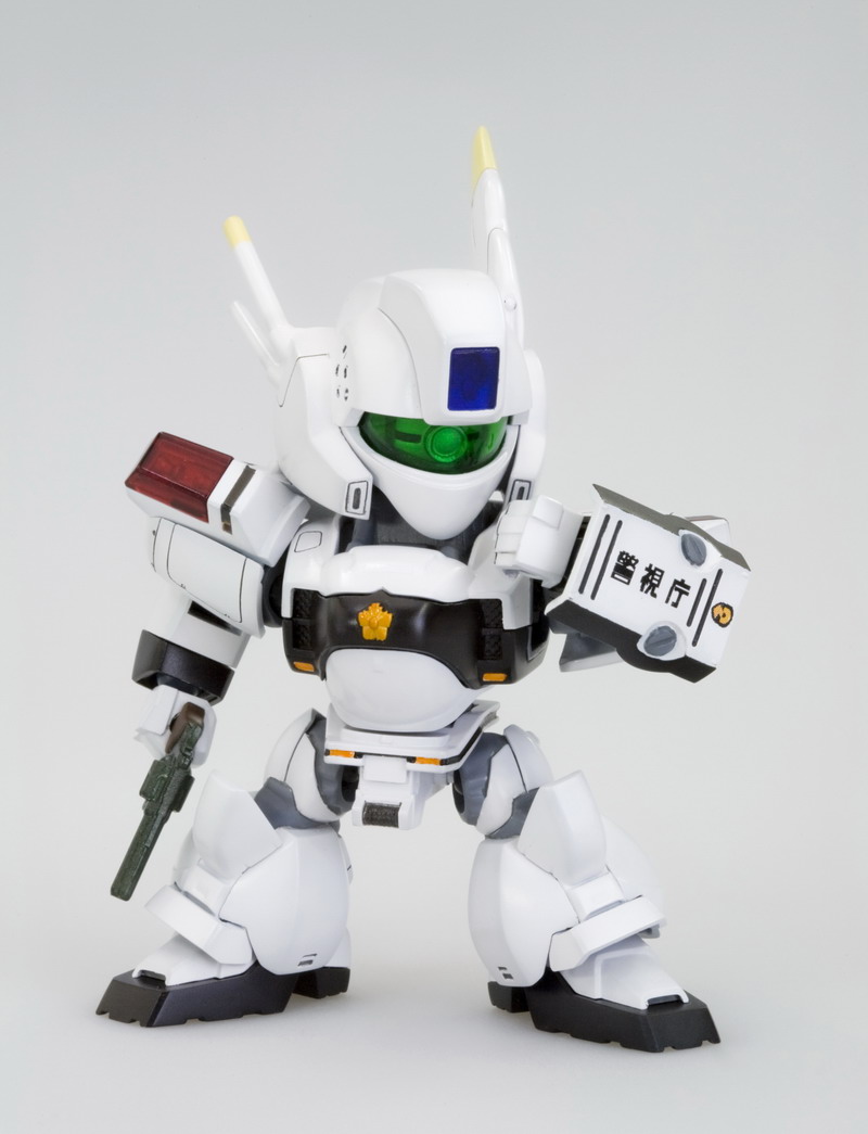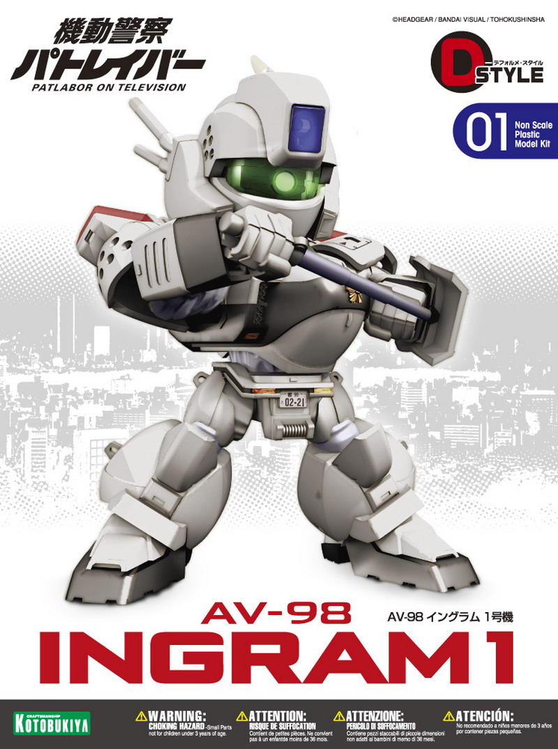 The Ingram 1 D-Style model kit captures the look of the original mecha with stunning detail in a cute little package. With 60 pre-painted parts and easy snap-fit assembly, no glue or paint is necessary. In addition to the classic black and white color scheme, the Ingram also has several tampo print logos. While it may be small, this "labor" is armed for bear with a stun stick, 37mm revolver cannon, and riot shield. Standing just over 4 ¼ inches tall, this little robot has approximately 15 points of articulation. Coming this July priced at a SRP of $14.99.