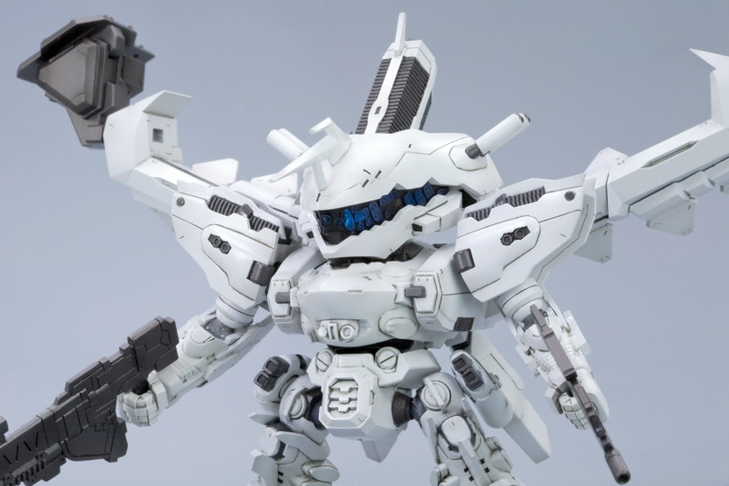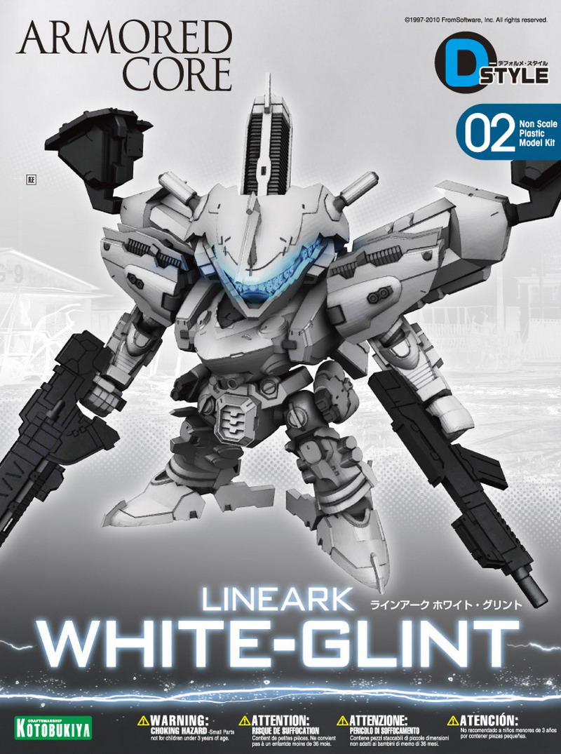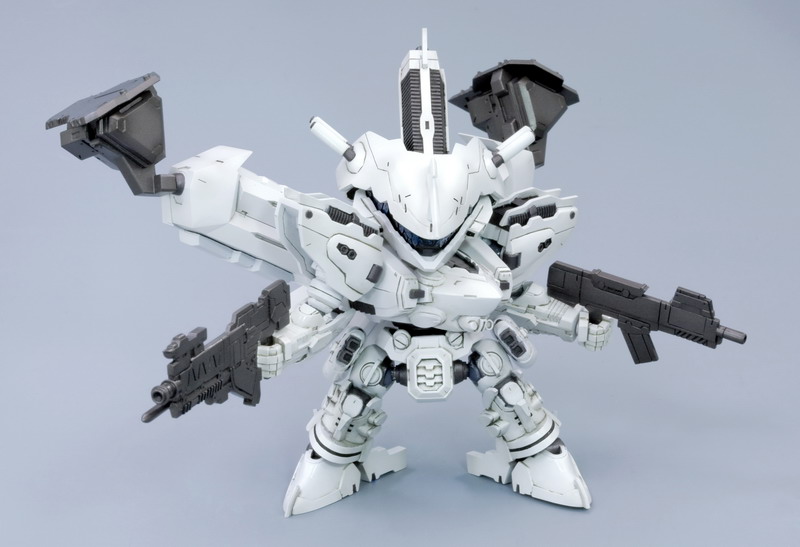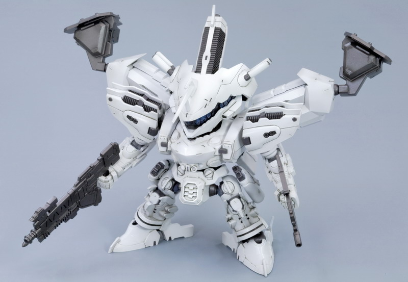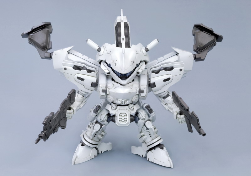 "SD-Style" is Kotobukiya's new plastic model kit series featuring various mecha rearranged into stylized miniature versions. It's appropriate then that the first unit in the series is the main character robot from Armored Core for Answer, WHITE GLINT SD-STYLE. It may be small, but the little mecha is intricately detailed down to its signature camera eye. Like its larger brothers, White Glint is easy to assemble with snap fit parts that don't require any glue, and it's even pre-painted in the movie colors. The tough but tiny Core is equipped with its heavy weaponry as well, including the 051ANNR Rifle, EB-0305 Assault Rifle, and SALINE05 Shoulder Missiles. Additional parts let you display White Glint with its boost hatches open or closed. Standing only 4 inches tall, the SD-Style robot is comprised of approximately 80 pieces and has 14 points of articulation. Coming this August priced at a SRP of $19.99.