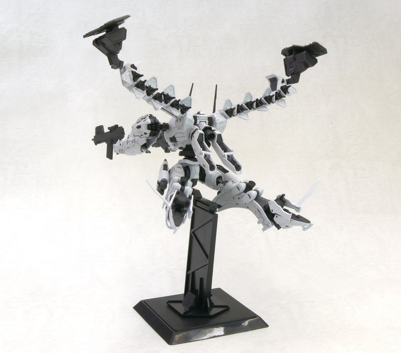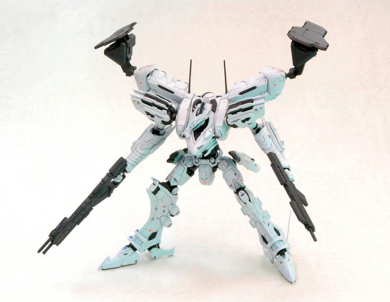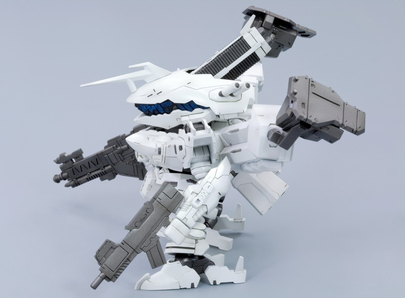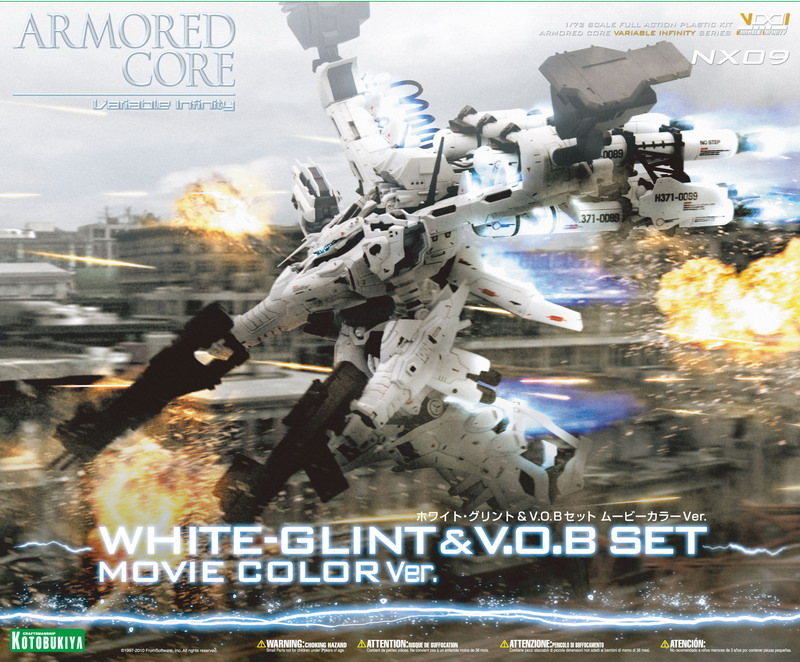 The number one robot from Armored Core For Answer is back in the biggest and baddest version ever, WHITE GLINT & V.O.B. Paired with its massive booster engines, the White Glint is fully transformable into its flying configuration without removing any parts.