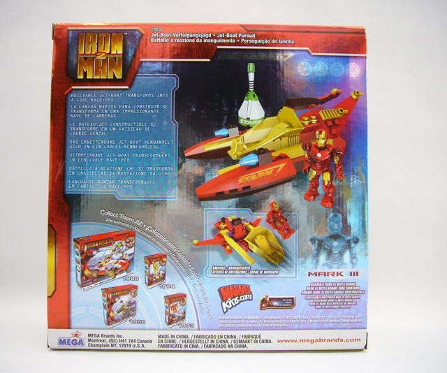 The backs of the boxes have more photos of the set and figure along with a brief "story" of the action. Finally, there is the usual "Collect Them All" section showing the three basic sizes of Iron Man 2 Mega Bloks sets.