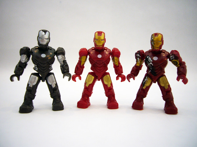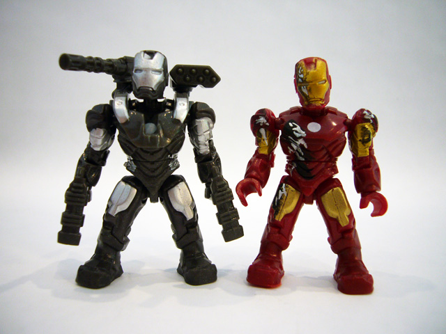 Both Iron Man and War Machine share the same basic body, seen before on the Aerial Attack Iron Man. The armor suits have an excellent sculpt featuring overlapping armor plates on the torso, and lots of intricate details, especially around the joints and on the helmets.