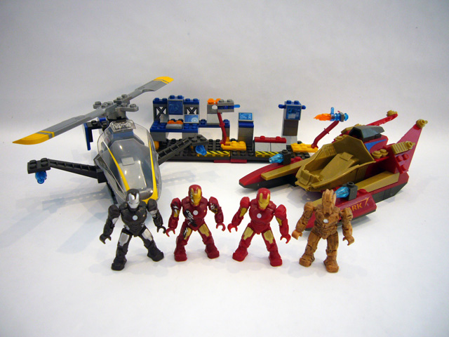 The medium-sized vehicle sets are definitely an upgrade in parts and complexity from the Aerial Attacks, and provide a good amount of building to create the jet-boat and chopper. Both vehicles are solid and look good, and will definitely appeal to kids and collectors of movie-themed constructible sets. The battle-damaged Iron Man Mark III and War Machine mini-figures are unique to these sets and are probably my favorite out of the entire line. Iron Man just looks like he’s been through hell, while War Machine has all of the additional weapons that make him such a badass. Both are highly recommended for Iron Man fans of all ages!